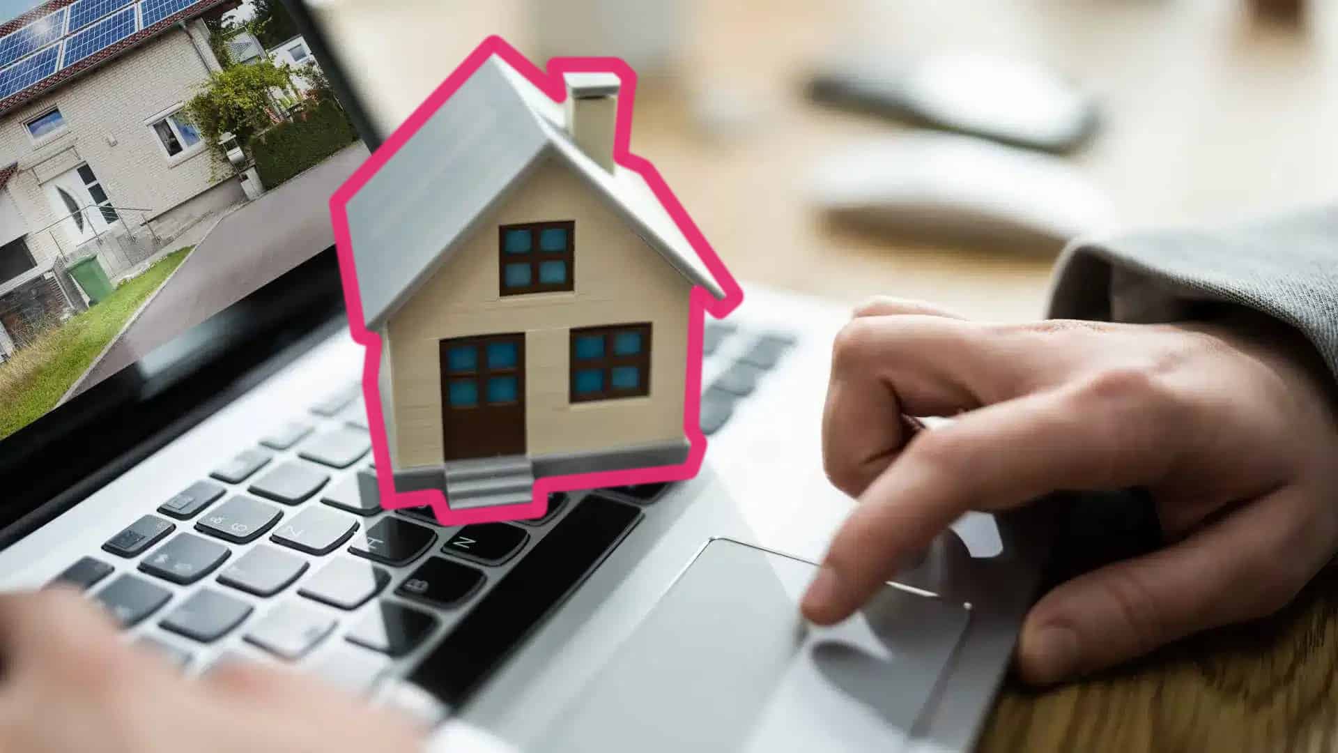 hands on a laptop with a house on top