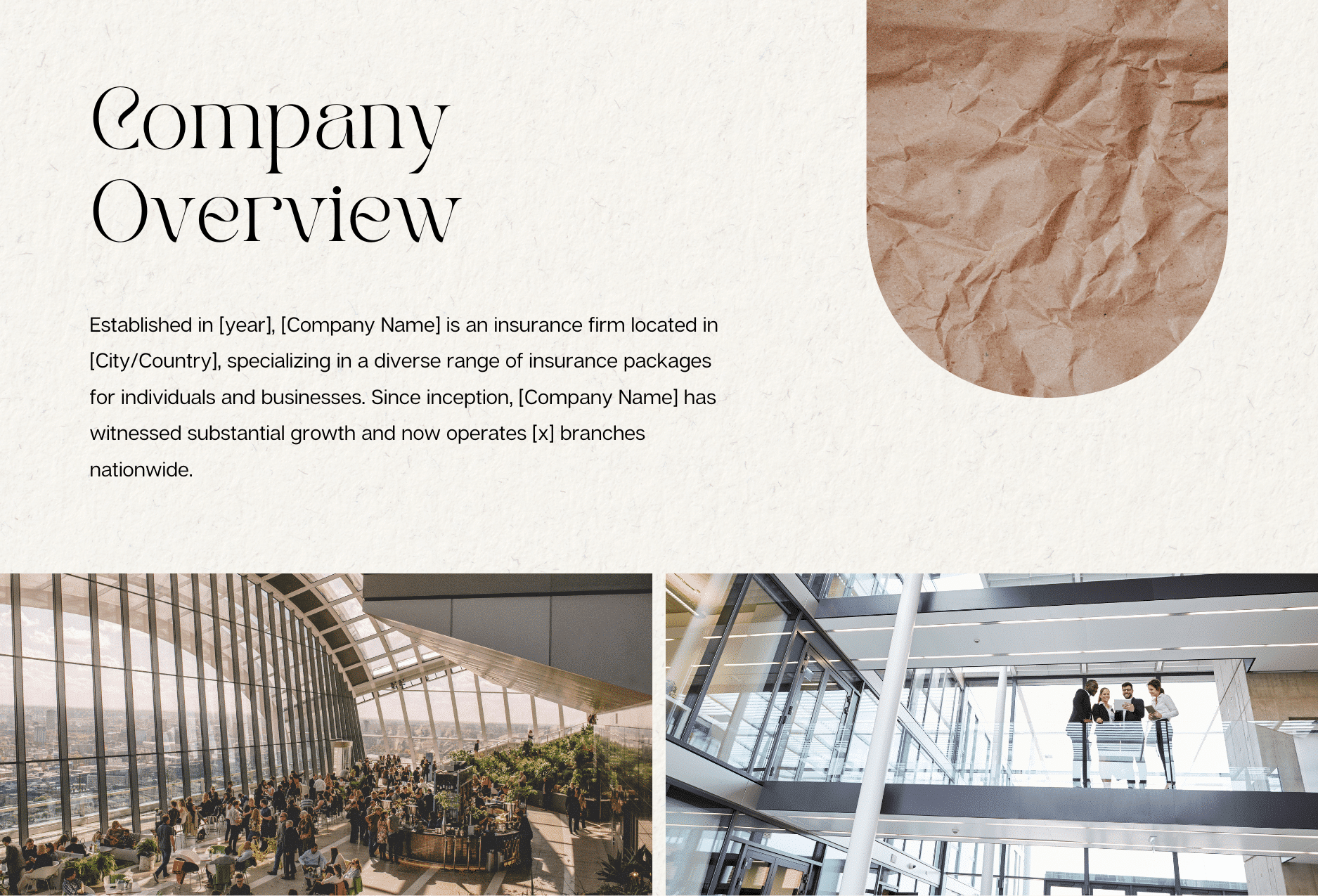 The Company Overview section provides a brief introduction to your insurance agency, highlighting your mission, values, and experience in the industry. This is an opportunity to build credibility and establish trust by showcasing your history, team, and achievements. Including a compelling overview reassures clients that they are working with a reputable and reliable provider. It sets the stage for the rest of the proposal, allowing clients to understand who you are before diving into the details of your offerings.